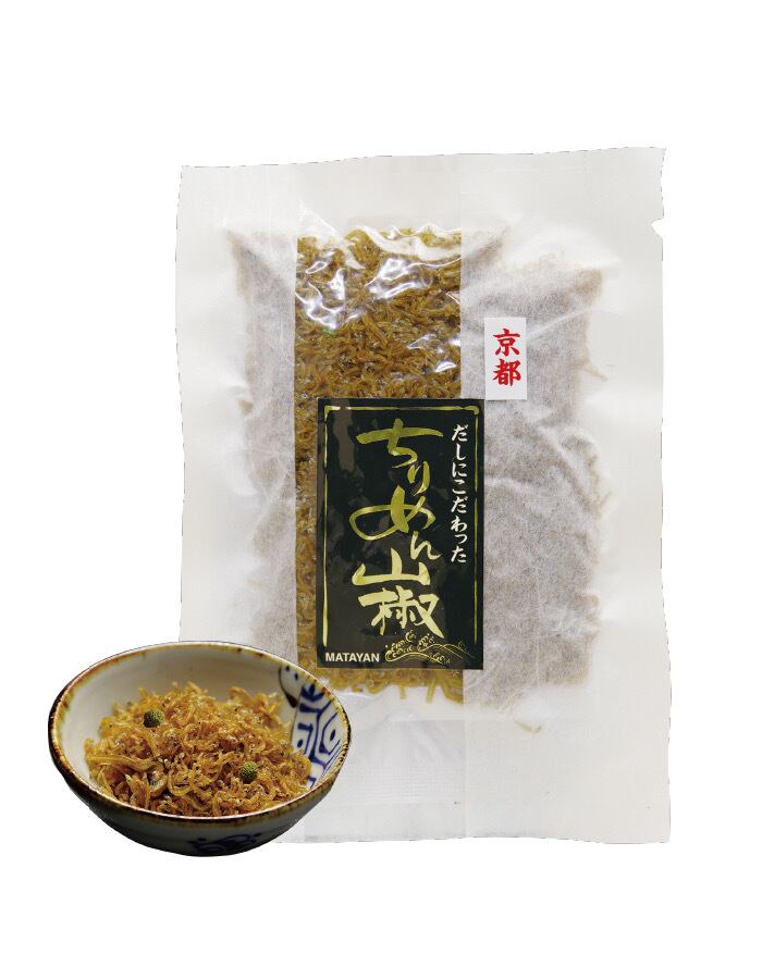 ・ちりめん山椒… 【京風】と【だし】にこだわりました。 風味豊かに炊き上げていますので、大粒の山椒の香り、だしがお口の中で広がります。